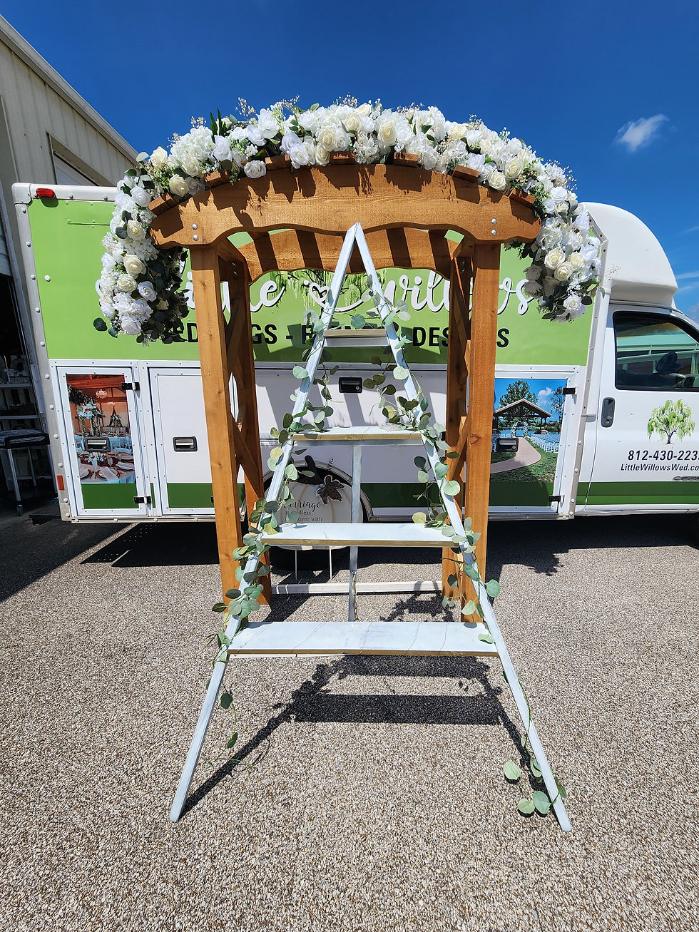Backdrops and props offer a versatile way to create a stunning visual centerpiece for the ceremony or reception. Whether you want a simple, elegant design or an extravagant, themed setting, backdrops and props provide a range of styles, colors, and materials to match any event aesthetic. Most of our backdrops can be customized with drapery, florals, lighting, and other decorative elements, allowing for a personalized touch for your event! All of our backdrops, flower walls and arches include delivery and pick-up.